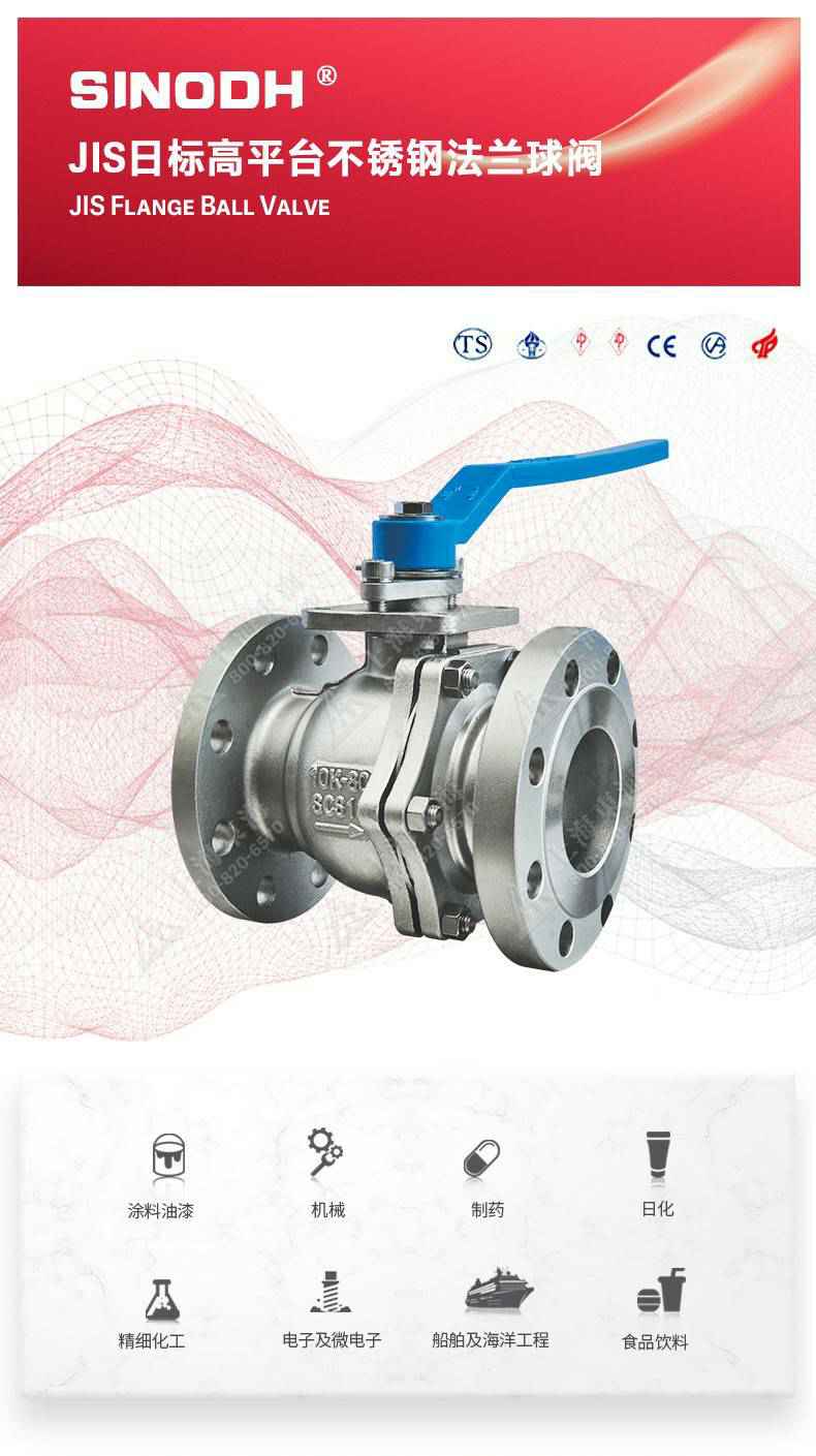 JIS日标高平台不锈钢法兰球阀,为上海富贵电子竞技运营有限公司自主研发生产本产品设计制造标准符合J1 SB2071标准,该产品的球体(密封件)是浮动的,在介质压力作用下,球体能产生-定的位移并紧压在出口端的密封面上,保证出口端密封。适用于水、溶剂、酸和天然气等一般工业介质,也适用于工况恶劣的介质,如氧气、过氧化氢、乙烯等介质。